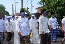 Jalan Kaki Daftar ke KPU Rembang, Paslon Harno-Bayu Dicegat dan Dikalungi Sorban